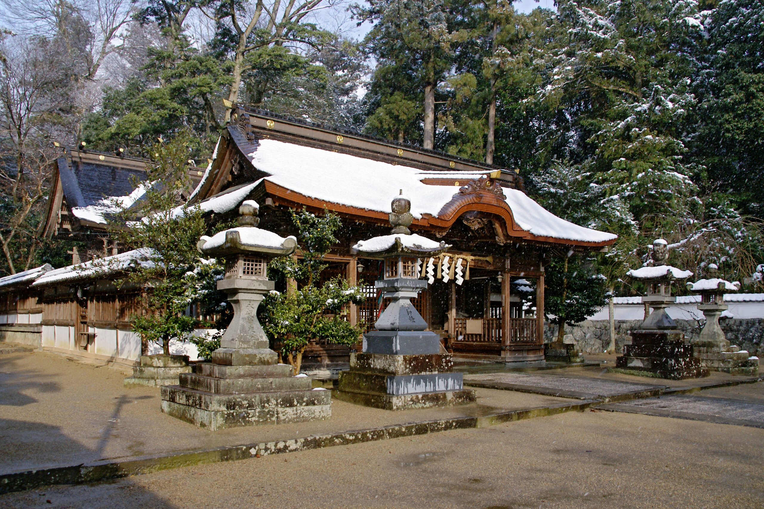 皇室や公家などからの崇敬が厚く、特に関白近衛家は、代々産土神として参拝していました。戦国時代から、疱瘡(天然痘)の守護神として広く知られてきた兵主神社では、天皇がご疱瘡の時や皇子誕生の際には、内侍局より代参が立てられ、病気平癒の祈祷が何度も行われました。